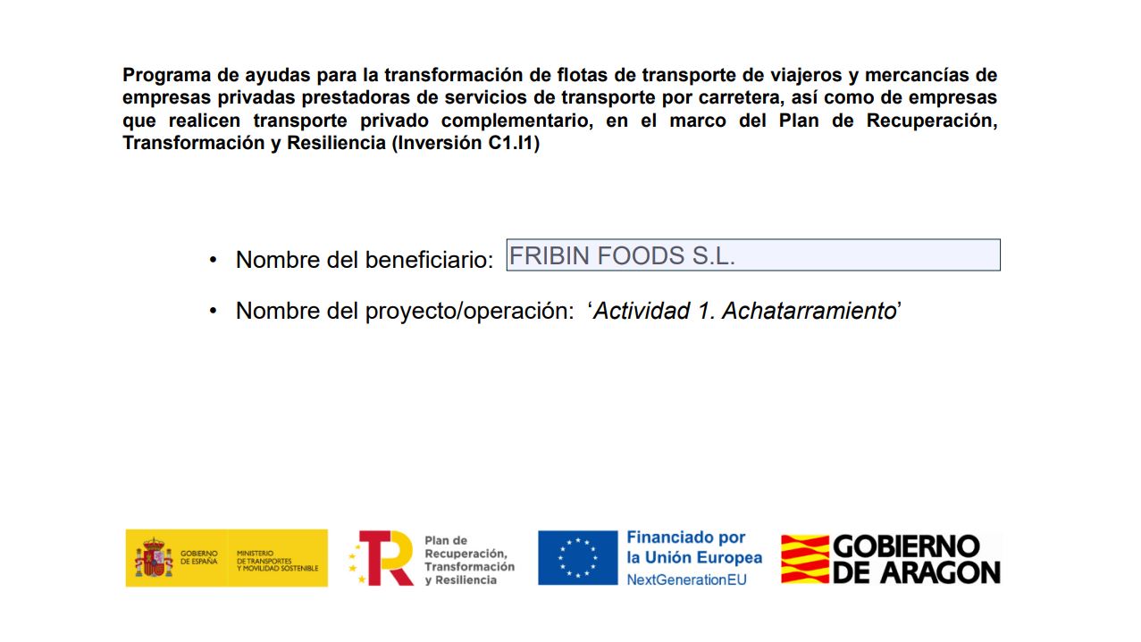 FRIBIN FOODS, S.L. ha recibido una ayuda para su proyecto implementación de puntos de recarga